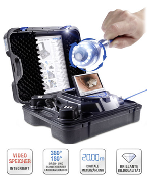 Servisna kamera VIS 350 z lokatorjem ter gibljivo glavo 360ᴼ za pregled in snemanje odtočnih cevi in kanalizacije ter prezračevalnih kanalov in dimniških tuljav.